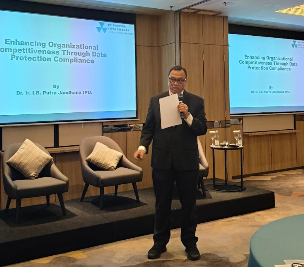 The summit opened with a keynote address by Dr. Ir. I.B. Putra Jandhana, President Director of PT Trimitra Cipta Selaras, titled “Enhancing Organizational Competitiveness Through Data Protection Compliance.” He emphasized that data protection should no longer be viewed solely as a regulatory obligation, but as a strategic business function that builds trust, strengthens organizational resilience, and enhances long-term competitiveness.
