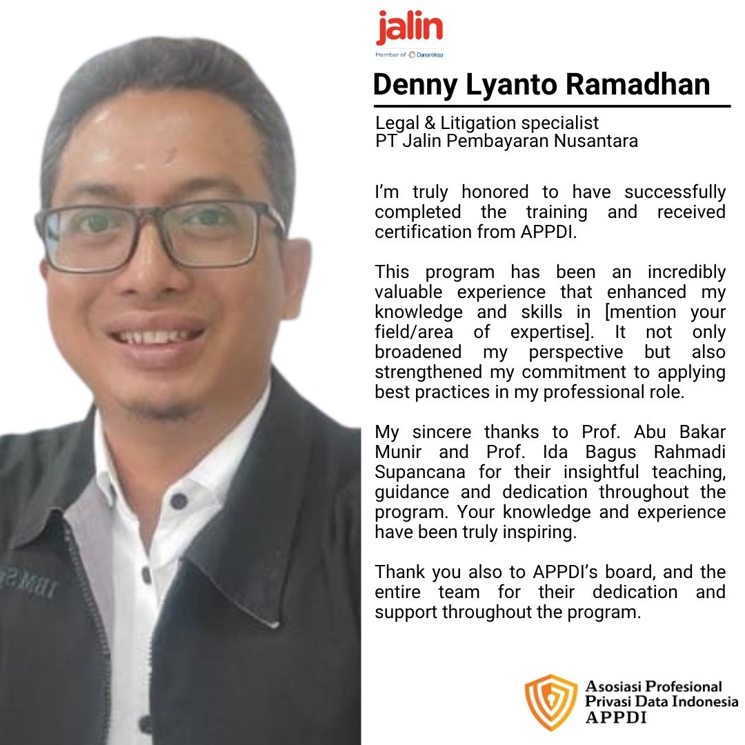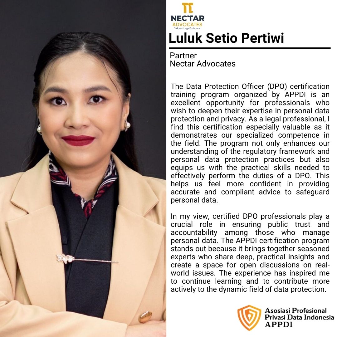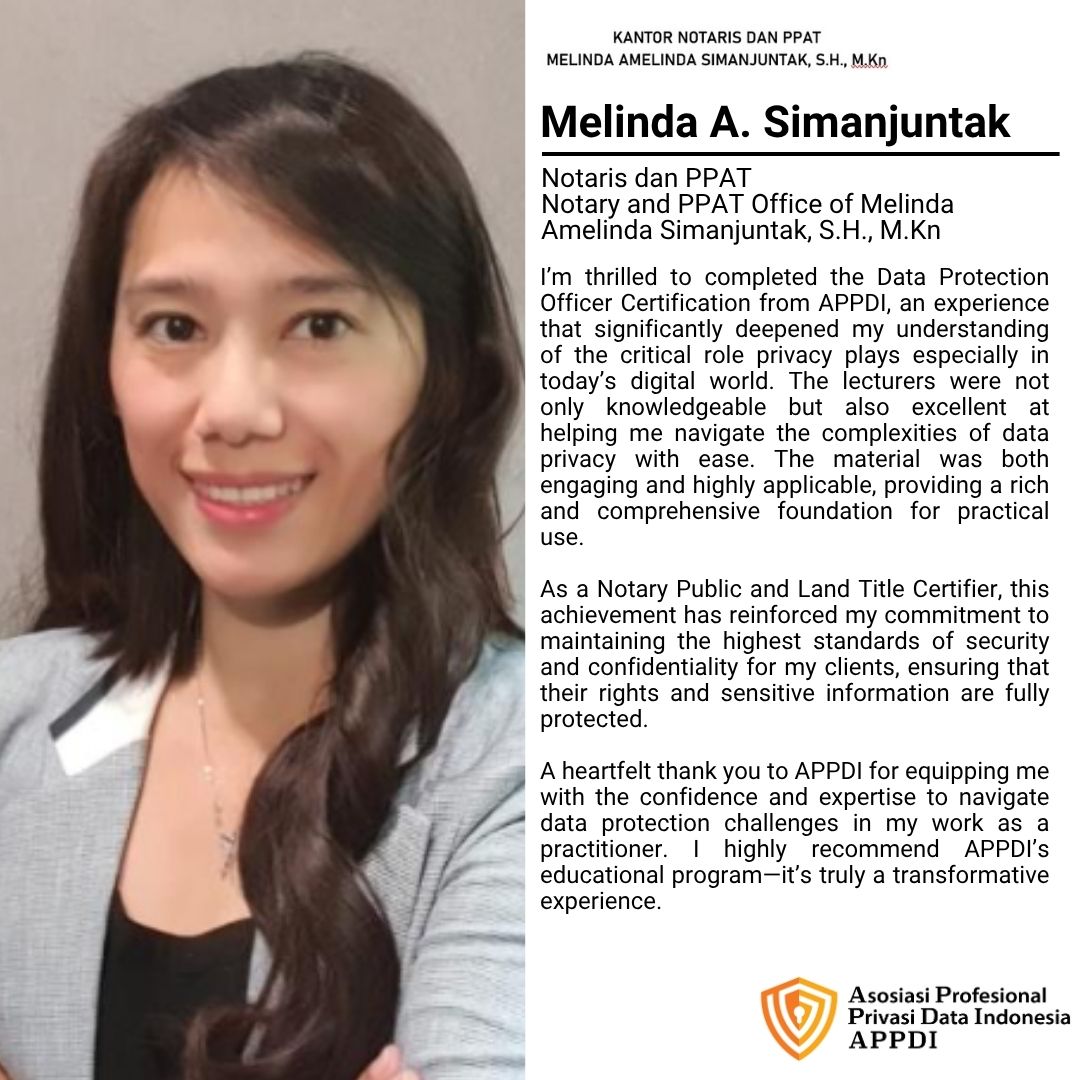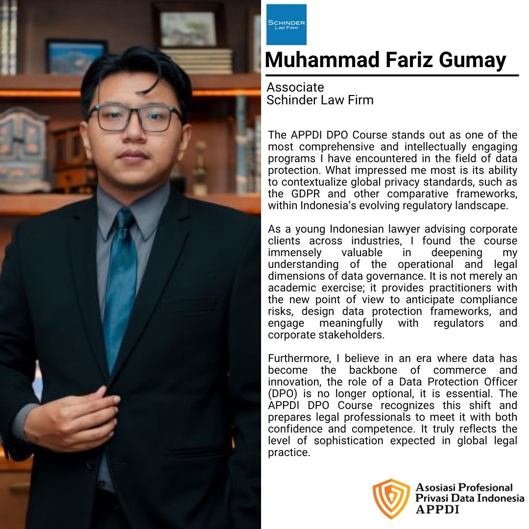 Asosiasi Profesional Privasi Data Indonesia (APPDI), supported by Schinder Law Firm, presents DPO Online Course #24 一 Pelatihan Pejabat Pelindungan Data Pribadi Bersertifikat.